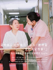 專題故事 5 員唔 係只識 得 換 片、沖 涼,護 理員 值得大家尊重。」 -保良局郭羅桂珍護老院護理員 Apple 工作量大、受 氣、骯髒、輪班 工作……不少人認為安老院護 理員工作辛苦,亦「看 不起」護 理員工作,不願意入行。從事長者服 務已經 18 年的梁詩 萍 A p ple 卻笑 著說︰「照 顧長者係辛苦㗎,但係如果 我辛苦可以令到老人 家開心,咁就係值得。 將心比心去做,這刻長者嘅 感受 就係你將來嘅 感受。」