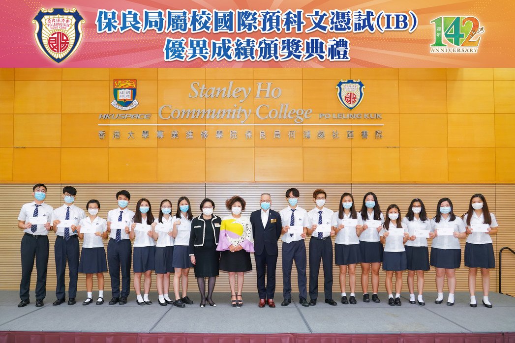 In the 2019/20 IB, 86 of our students were awarded with 36 points or above. "Scholarships Presentation Ceremony of Po Leung Kuk Schools for Outstanding Achievements in International Baccalaureate(IB) Diploma Programme" was held at Eleanor K C Kwok Hall in HKU SPACE Po Leung Kuk Stanley Ho Community College on 7 July 2020 for recognizing students' outstanding performance. We are honoured to have Vice Chairman of Po Leung Kuk, Dr. Daniel C Y CHAN, MH as our officiating guest. Two scholarships including the "Po Leung Kuk Scholarship" and "Po Leung Kuk Dr Kwok Siu Ming Simon and Dr Kwok Law Kwai Chun Eleanor Scholarship Fund" were awarded on the day.