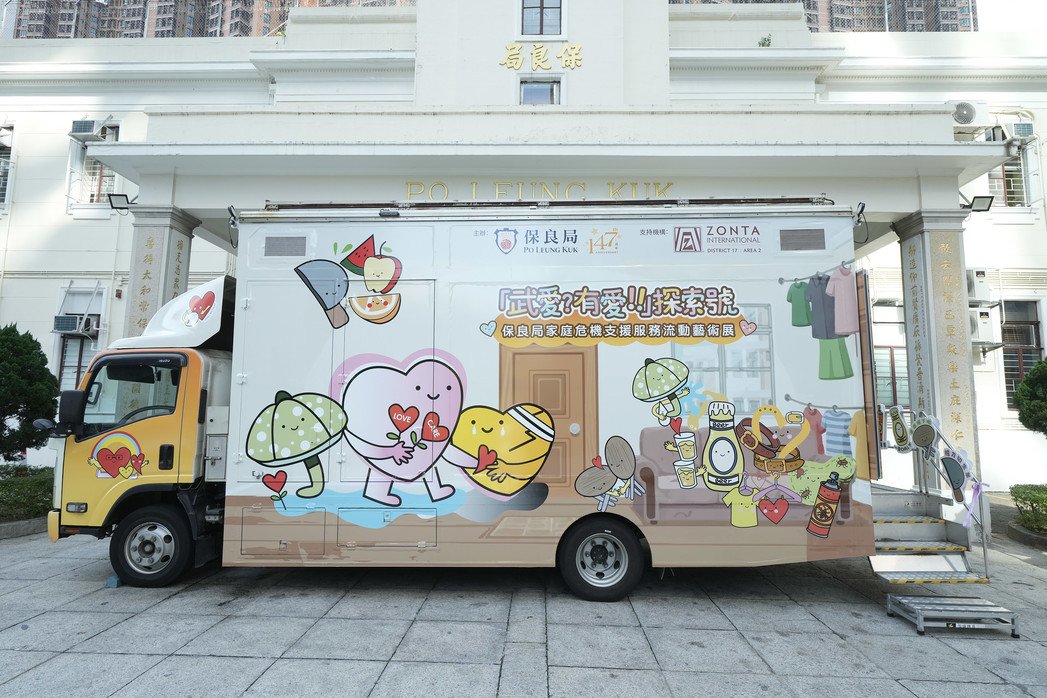 (香港.2025年12月9日)—— 保良局昨日舉行「武愛?有愛!!」探索號流動藝術展活動日,一眾嘉賓共同見證保良局家庭危機支援服務展覽的活動。此次展覽旨在透過公眾教育及藝術展示,促進市民大眾對家庭暴力問題的認識,並引導大家思考具體表達「愛」的方法,為家庭創造和諧環境。
