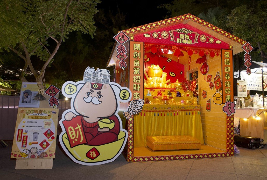 其中一個打卡點「寵物財神廟」由居於保良局李兆基青年綠洲的青年設計師Lena設計。她花了兩星期時間,利用3D打印技術,將她自創的鬍鬚平安貓化身寵物財神。她於第一期V Mart維園市集亦有擺設攤檔,認為銷情理想,希望在這個新春期間可以將幸運和平安帶給所有香港市民及遊客,亦希望其打卡裝置,配合各項表演和活動,能協助帶動維園人流和市集銷情。