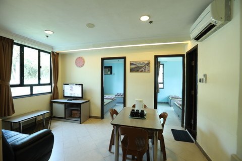 Three blocks of 2-storey bungalows with one 4-bed unit, one 6-bed unit, and one 8-bed unit per floor (all single beds). Each unit contains its own lounge room furnished with HD television, mini fridge, sofa, self-contained toilet and shower, hairdryer and free WiFi. The units are elegantly designed and an ideal choice for a luxurious getaway.