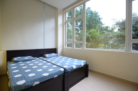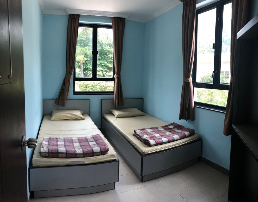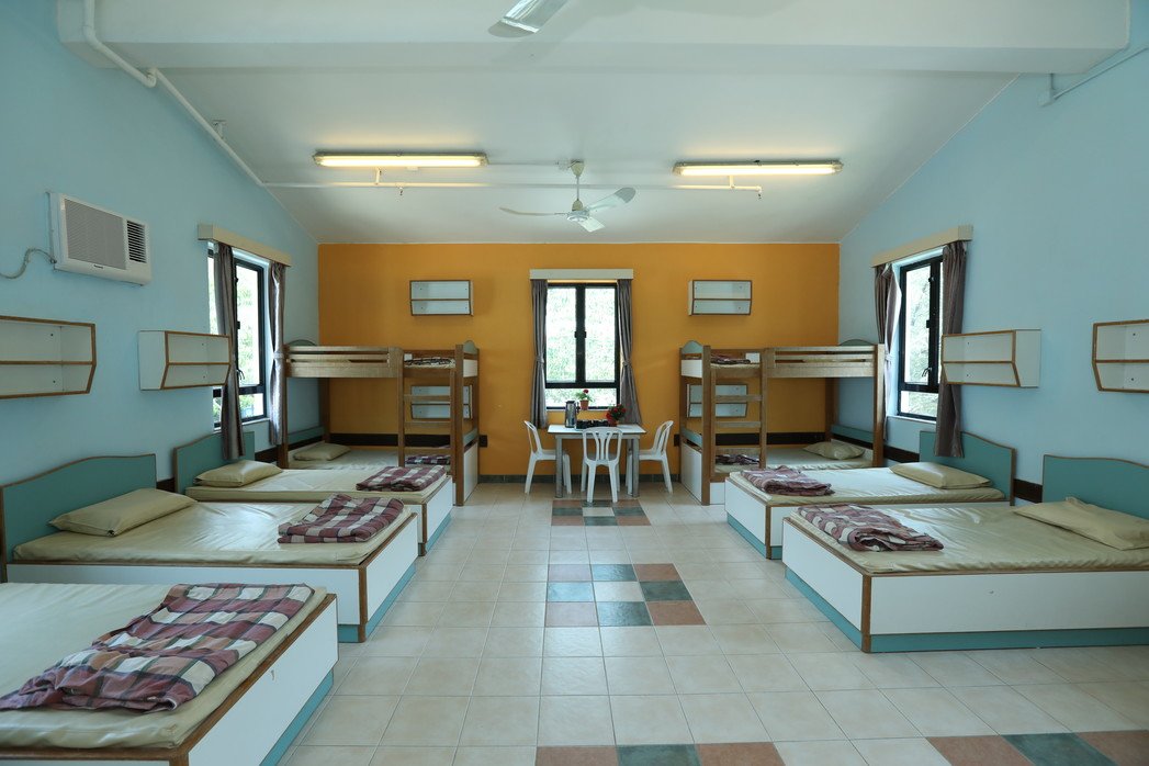 Seven blocks of 2-storey bungalows, with 2 units on each floor and shared toilet and shower facilities. Each floor is furnished with a TV, common room and 10 beds (4 bunk and 6 single).