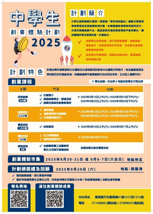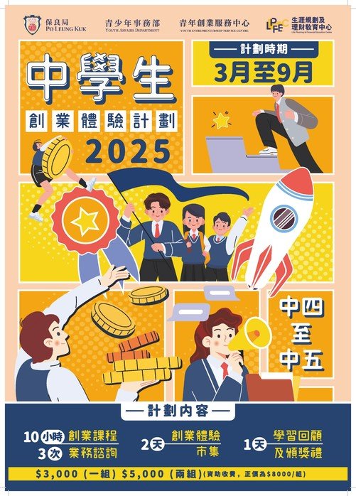 由保良局青年創業服務中心及生涯規劃及理財教育中心聯合舉辦,計劃結合專業創業課程及市集體驗活動,旨在培育學生的創業家精神、營商技巧及實踐能力,為他們未來的學習和職業生涯打下堅實的基礎。