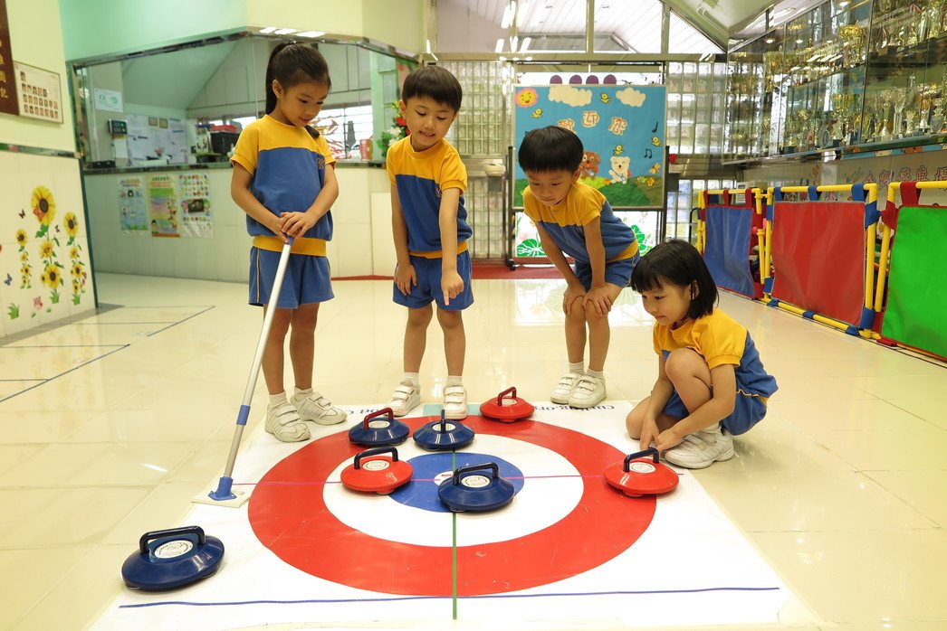 「推行初期,幼兒在我們協助下組隊比賽,後來他們更自發邀請同伴入隊,玩得十分投入。」有四年教授經驗的袁敏儀主任笑稱,「大部份小朋友一開始只是隨意推出地壼,後來在老師引導下,就開始一起研究下次發球的策略。」小小的地壺鍛鍊出專注力及合作能力,殊不簡單。