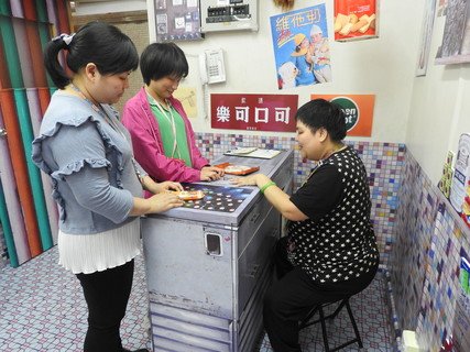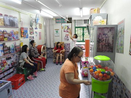 In view of the service need of these ageing service users, the nostalgia tuck shop is decorated like the old tuck shop in 1960-70s, featuring with the collective memories of their good old days, such as junk box; vintage capsule vending machine; rotary dial phone; retro snacks and candies like White Rabbit creamy candies, haw flakes or Cola gummies. Some of the collectibles are gathered from the vintage stores or donated by the parents, while part of them are second-hand items from the Kuk’s recycling unit.